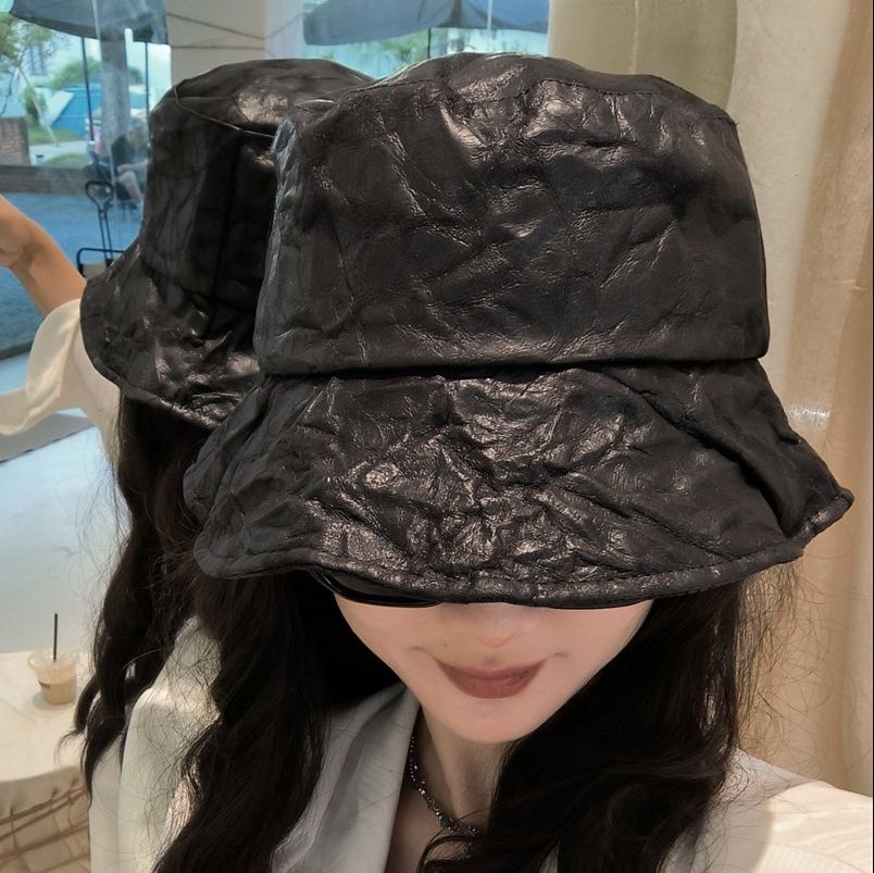 Home ファッショングッズ 帽子 バケットハット 高品質 しわ加工 レザー調バケットハット