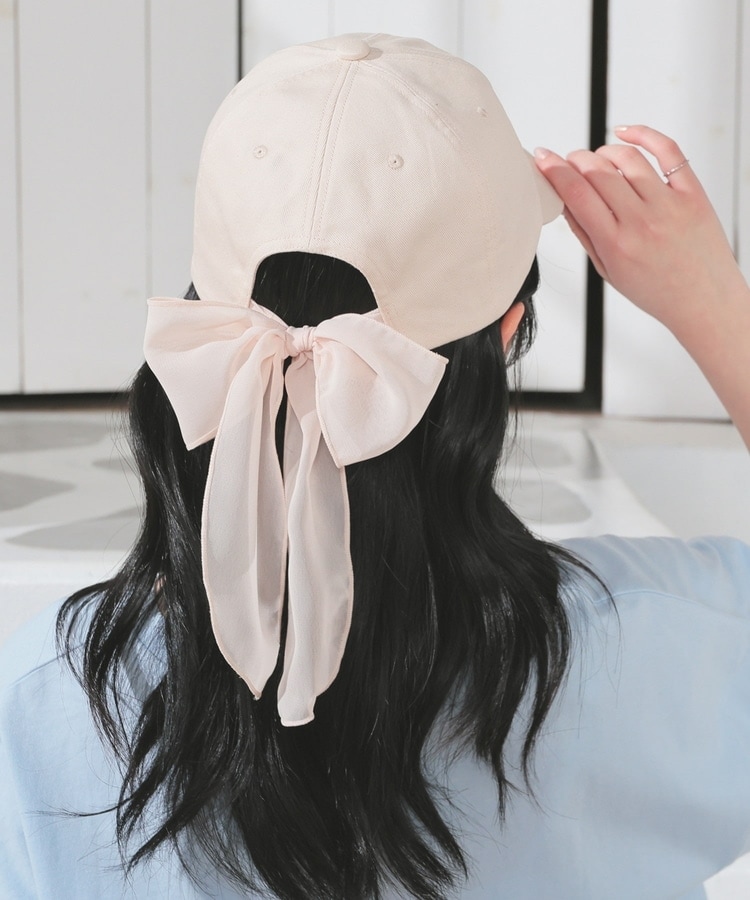 カジュアルな印象のキャップながら、バッグリボンがさりげなくガーリーなデザイン。
